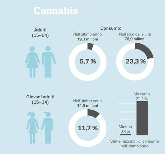 I nuovi dati sottolineano l’importanza del ruolo svolto dalla cannabis nelle statistiche sulla criminalità correlata alla droga, in cui l’80 % dei sequestri riguarda la cannabis, mentre il suo consumo o possesso per uso personale è all’origine di più del 60 % di tutte le segnalazioni di reati contro la legge sulle sostanze stupefacenti in Europa
