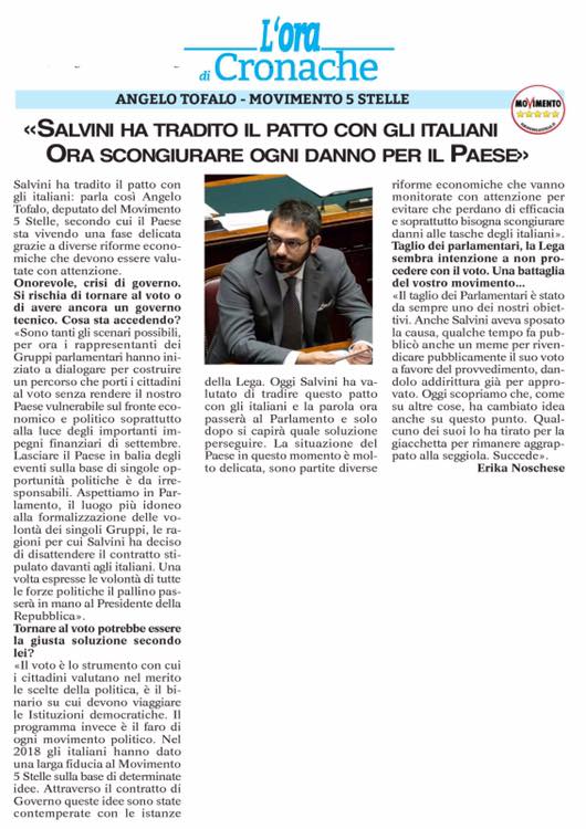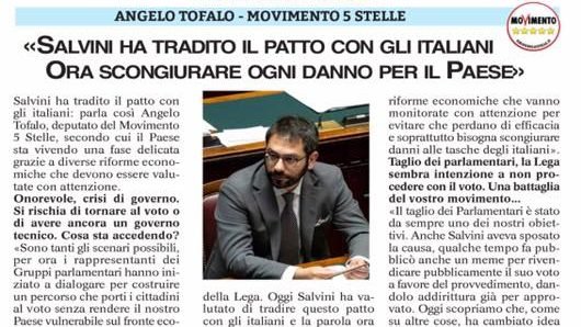 Se la sfiducia sarà rinviata a dopo il 22 agosto, giorno della votazione per la riduzione dei parlamentari, vorrà dire che la Lega ha capito che avrebbe pagato amaramente questa mancata promessa. Dal giorno dopo ci sarà tutto il tempo in aula per ascoltare come giustificheranno il tempestivo tradimento del contratto stipulato davanti agli italiani. Non sarà semplice trovare motivazioni valide per aver staccato la spina ad un Governo che stava lavorando a favore del Popolo italiano su diversi fronti.