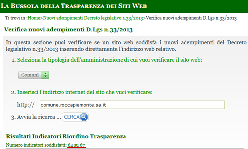 Esiste  un sito-web creato appositamente dal Ministero per la Pubblica Amministrazione e della Semplificazione  nel quale si evidenziano le pecche del sito dell’ente.  >>”La bussola della Trasparenza”<<